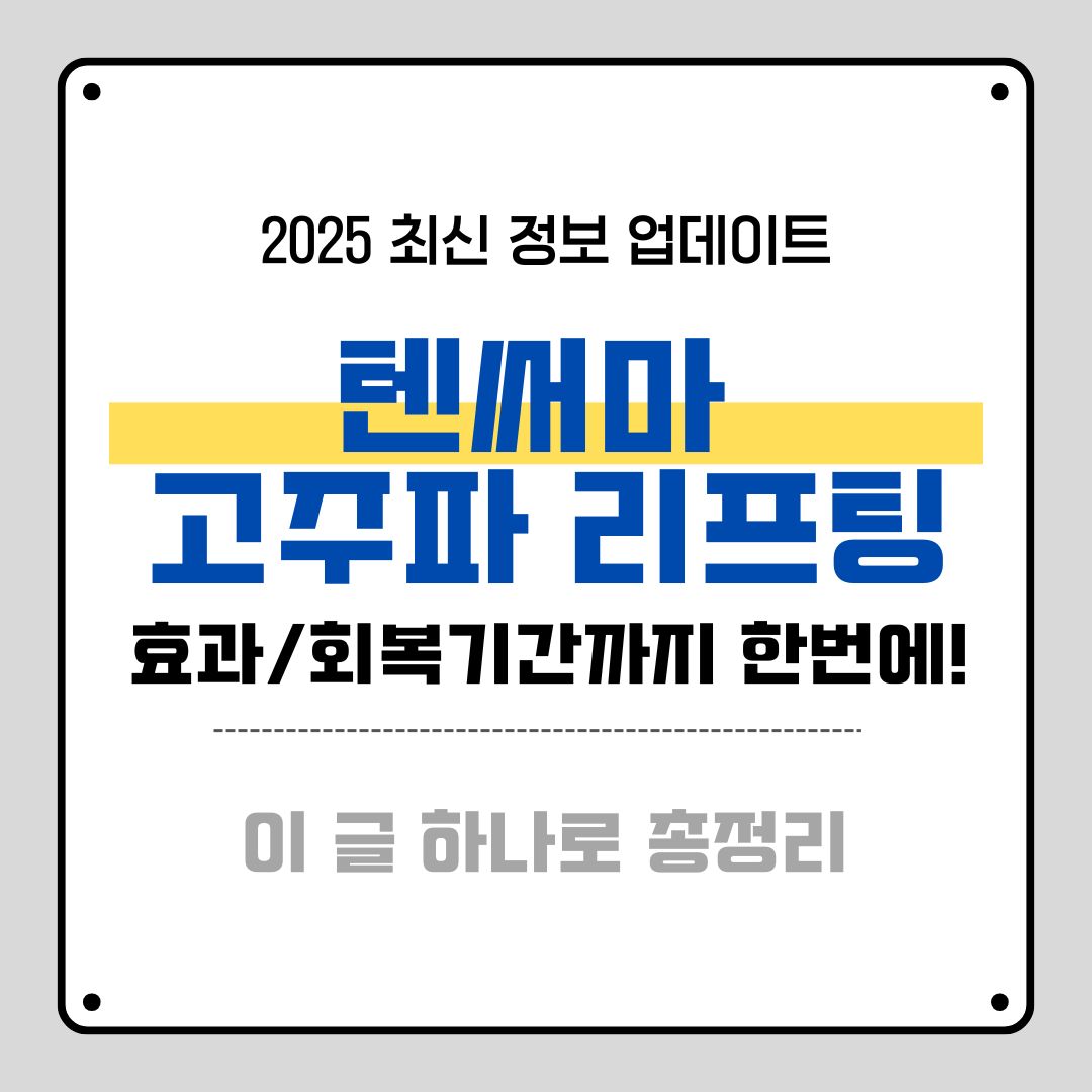 오늘은 텐써마 고주파 리프팅 효과, 시술 과정, 회복 기간, 비용까지 모든 것을 자세히 알아보겠습니다. 특히 다른 리프팅 시술과의 차이점, 효과를 극대화하는 방법, 그리고 실제 시술 경험자들의 후기를 통해 정말 효과적인지 살펴보겠습니다.